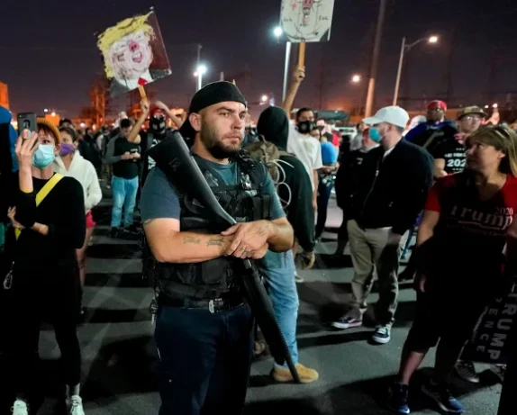 Hơn 150 người ủng hộ Tổng thống Trump, một số đó mang theo súng đang tụ tập bên ngoài văn phòng bầu cử Hạt Maricopa, bang Arizona vào đêm 5-11 để biểu tình, báo The New York Times đưa tin.