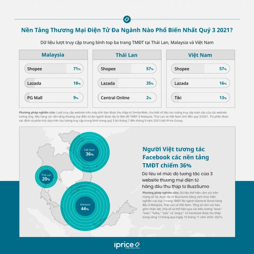 Mới đây, iPrice Group đã thực hiện nghiên cứu ba thị trường thương mại điện tử (TMĐT) tương đồng lần lượt ở Việt Nam, Thái Lan và Malaysia để tìm ra sự khác biệt trong xu hướng mua sắm online trong quý III-2021.