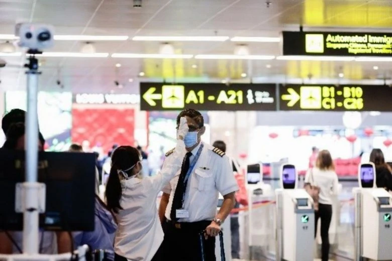 Đo thân nhiệt tại sân bay Changi. Ảnh: Tổng cục Du lịch Singapore