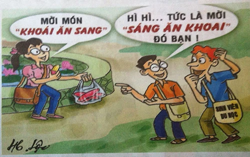 Những cô tên Diễm thật sang, đẹp từ Diễm Trang, Diễm Trinh,Diễm Trâm bỗng trở thành (đố bạn nói lái). Hương lại bị gắn cho cái đuôi Hương bên đèo thành “Heo bên đường". Gia Bảo thành là Bao giả, Bích Đào bỗng biến thành Bào... Đít, Mai Liên thành Miên Lai, Dương Cầm thành Dâm Cường… Có cô gái bảo, bây giờ em phải đi gặp Mộng Trà. Ai cũng thắc mắc: Mộng Trà là ai, diễn viên, người mẫu hay hoa khôi nào đây? Hóa ra, Mộng Trà, là Mộng Chè, tức là… mẹ chồng!