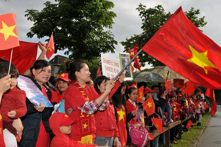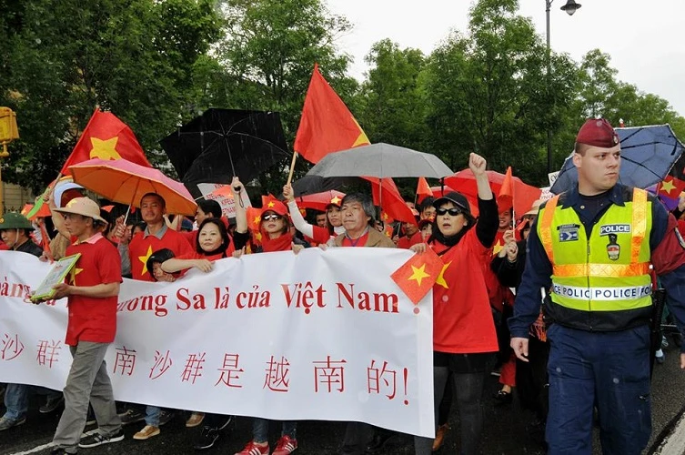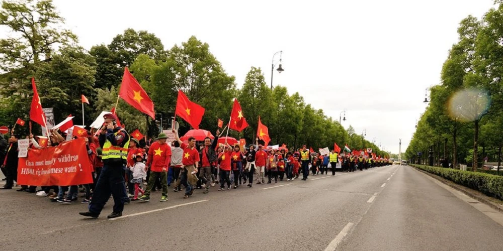 Những ca khúc ngợi ca lòng yêu nước và ý chí quật cường dân tộc như “Bạch Đằng Giang”, “Hội nghị Diên Hồng”, “Nơi đảo xa”... cũng được mở liên tục trên loa phóng thanh, hòa cùng nhiều khẩu hiệu phản đối Trung Quốc mà bà con trong cộng đồng hô vang trong suốt hơn hai tiếng của cuộc tuần hành.