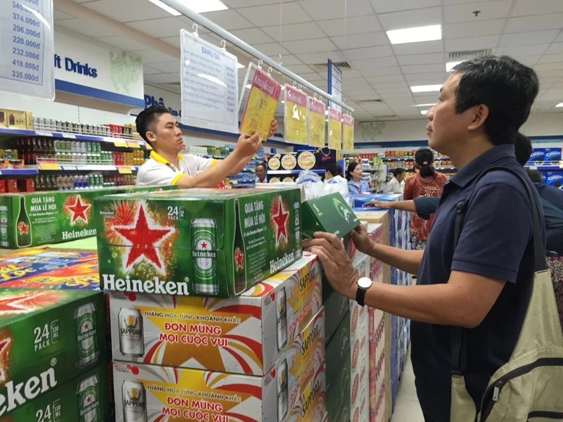 Người tiêu dùng đang tham khảo giá các hãng bia