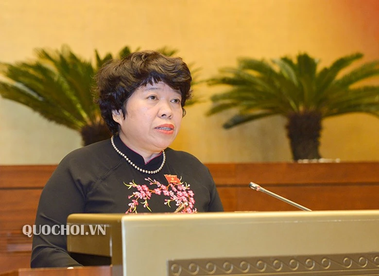 Chủ nhiệm Ủy ban Về các vấn đề xã hội của Quốc hội Nguyễn Thúy Anh đọc tờ trình thẩm tra dự án luật.