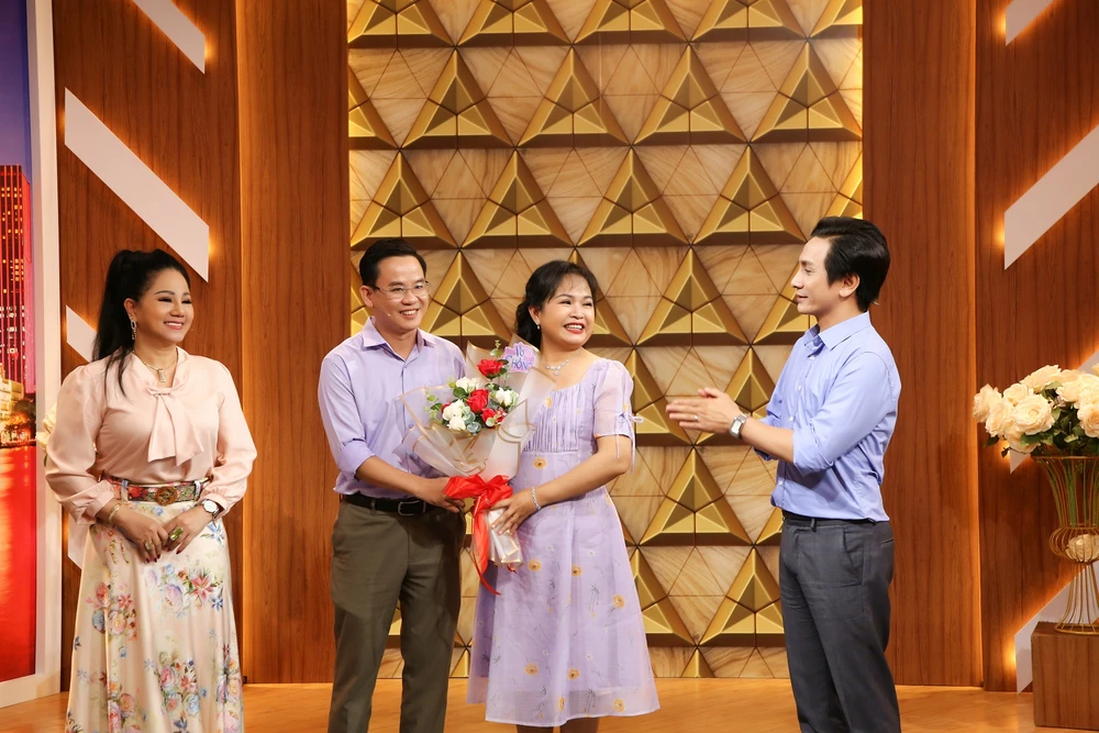Cuộc sống vợ chồng hi sinh vì nhau của cặp đôi đã khiến MC Đình Toàn và khách mời, ca sĩ Ngọc Ánh xúc động, nhiều lần nước mắt chực rơi.