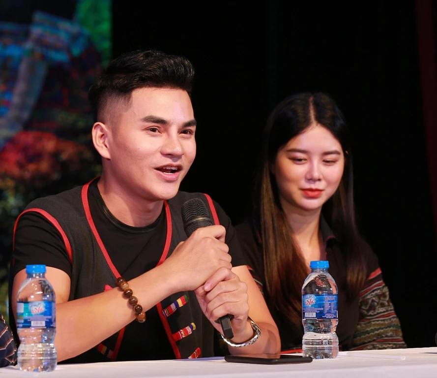La Hoàng Quý (trái) chia sẻ tại buổi ra mắt các sản phẩm âm nhạc của mình.