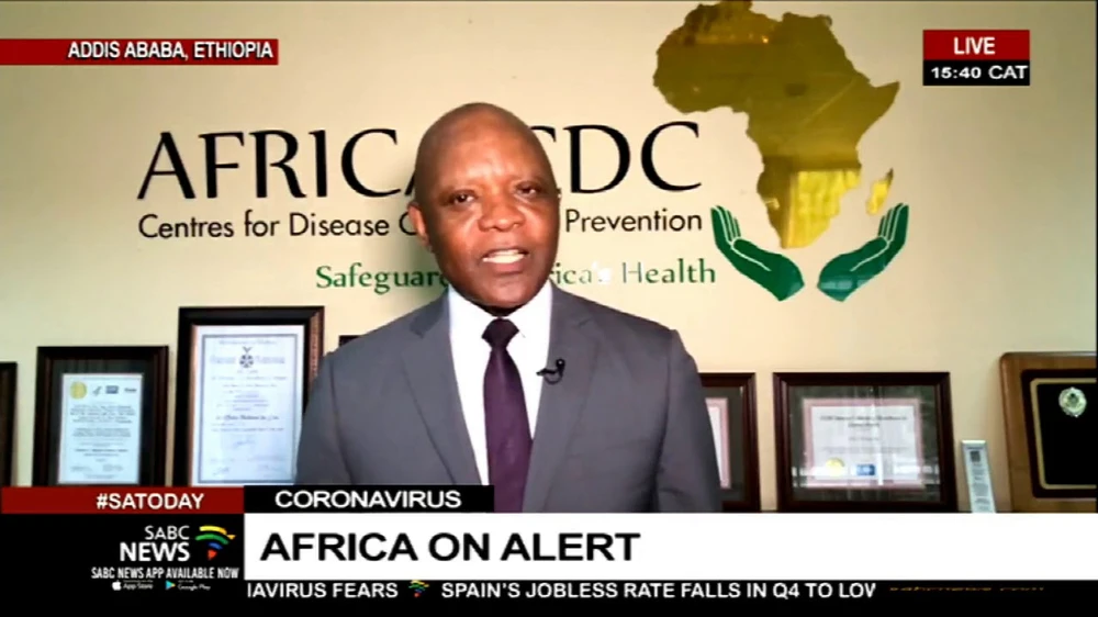 Giám đốc Africa CDC -Tiến sĩ John Nkengasong. Ảnh: SABC NEWS