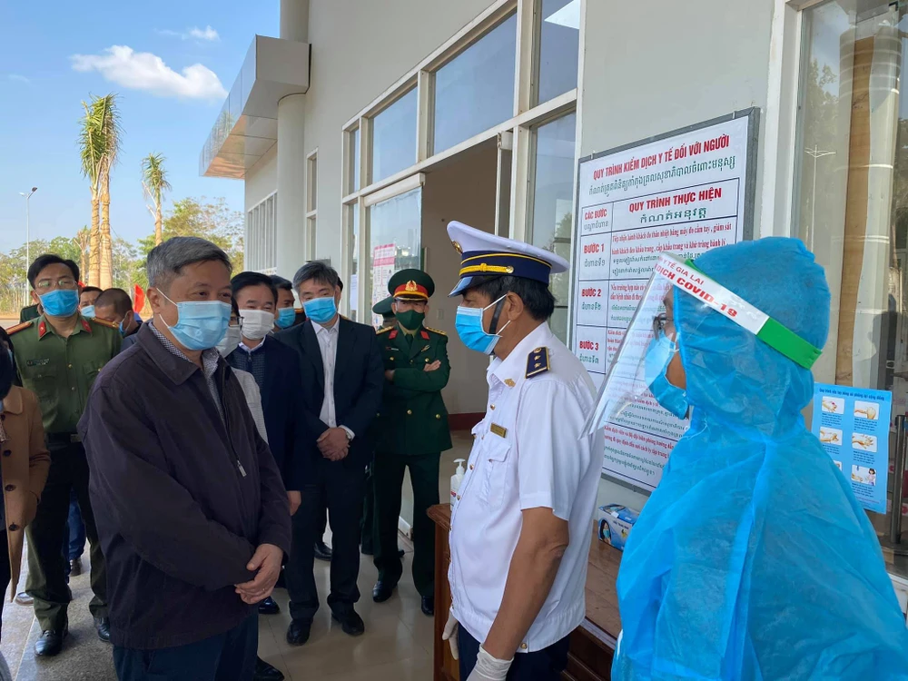 Thứ trưởng Bộ Y tế Nguyễn Trường Sơn kiểm tra công tác nhập cảnh tại cửa khẩu Lệ Thanh, Gia Lai. Ảnh: BYT