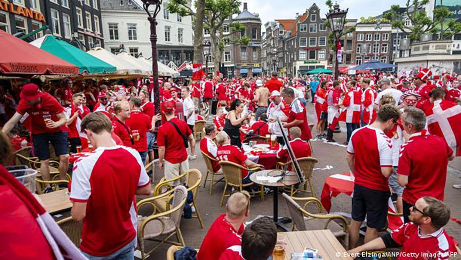 Euro 2020 được tổ chức ở 11 TP tại 10 nước châu Âu. Những ngày qua, cảnh thường được thấy trên truyền hình là các sân vận động chật kín cổ động viên không mang khẩu trang đến xem và cổ vũ. Tại Copenhagen, Munich, Budapest và nhiều nơi khác, rất đông cổ động viên đứng san sát nhau và chật cứng các khán đài - những hình ảnh dường như rất lạ lẫm với phần đông còn lại của thế giới vốn đã 18 tháng chống chọi với đại dịch, theo đài DW.