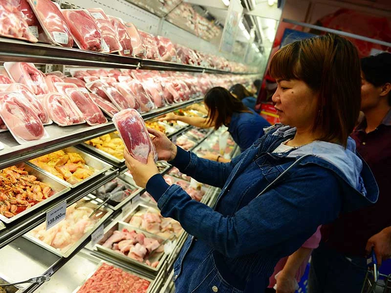 Người dân tìm mua thịt heo ở một siêu thị tại TP.HCM. Ảnh: HOÀNG GIANG