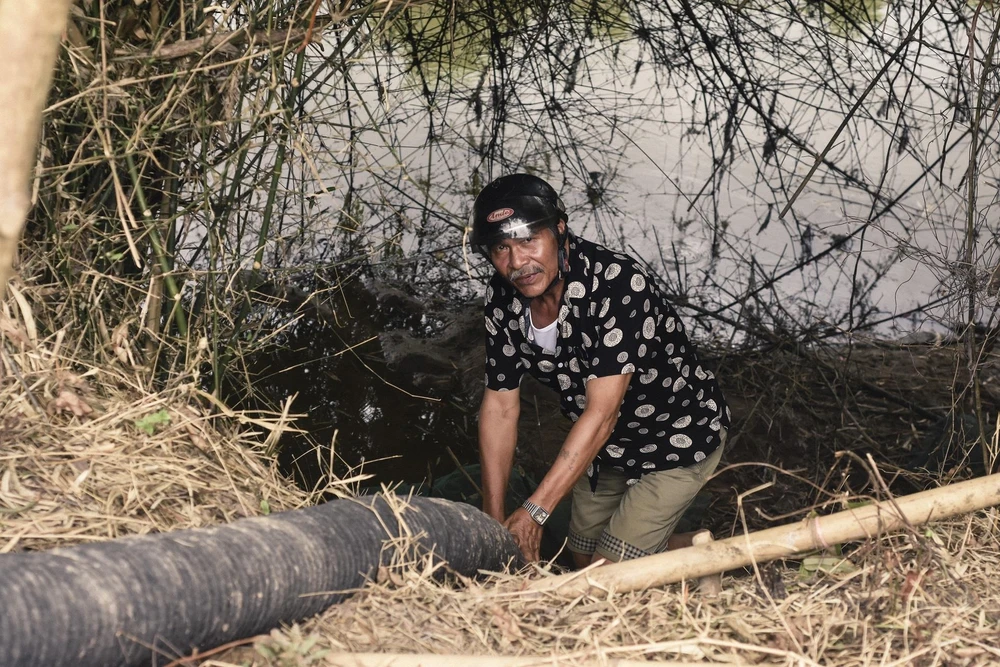 HTX sử dụng máy để bơm nước vào ruộng nhưng thất bại. Ảnh: NGUYỄN DO