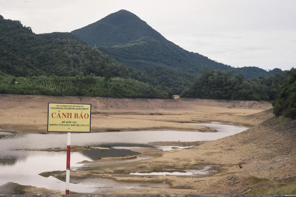 Hồ Hòa Mỹ cạn kiệt nước. Ảnh: NGUYỄN DO
