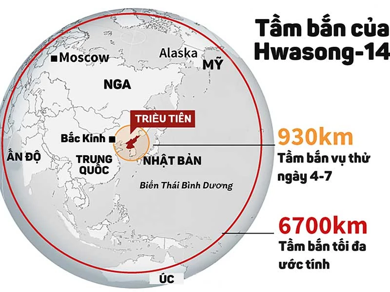 Theo CNN, tên lửa Triều Tiên phóng vào ngày 4-7 có tầm bắn tối thiểu đến 5.500 km và đủ khả năng mang theo đầu đạn hạt nhân. Còn trả lời hãng tin AP, chuyên gia tên lửa người Mỹ David Wright ước tính tầm bắn tối đa của Hwasong-14 có thể lên đến 6.700 km. Ngoại trưởng Mỹ Rex Tillerson gọi vụ thử tên lửa lần này là “một bước leo thang đe dọa mới” nhắm vào Mỹ. Cục diện an ninh khu vực đã thay đổi lớn sau vụ phóng thử thành công ICBM của Bình Nhưỡng. Tổng thống Hàn Quốc Moon Jae-in cảnh báo Bình Nhưỡng đừng vượt “lằn ranh đỏ” trong cuộc đối đầu trên bán đảo Triều Tiên: “Tôi hy vọng Triều Tiên đừng bước qua ranh giới mà không ai có thể quay đầu được nữa”.