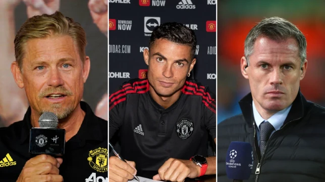Cựu thủ môn MU Peter Schmeichel tranh cãi gay gắt với Carragher về ảnh hưởng mới của Ronaldo đến lối chơi chung. Ảnh: CGI.
