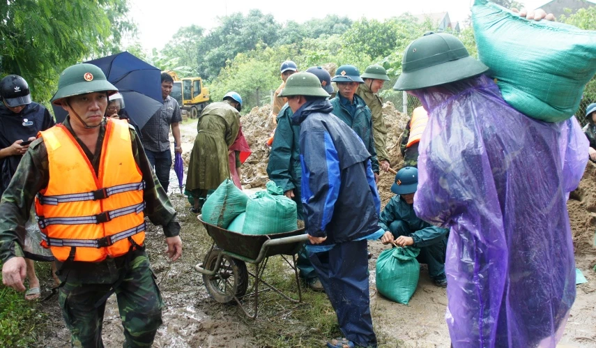 Chiều 13-10, Trung đoàn 764 (Bộ Chỉ huy Quân sự tỉnh Nghệ An) đã điều động 100 cán bộ chiến sĩ đến cùng hơn 500 cán bộ chiến sĩ Quân khu 4, Công an TP Vinh và dân quân, người dân khẩn cấp cứu đê sông Vinh (phường Vinh Tân, TP Vinh, Nghệ An).