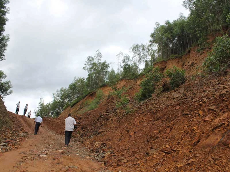 Nguy hiểm nhất nằm ở dốc Làng Roan. Con dốc này được san ủi năm 2014, nay hai bên dốc đất đá đổ ập xuống. Mặc dù địa phương đã khắc phục tạm nhưng hai bờ ta luy có thể sạt lở tiếp bất kỳ lúc nào. Anh Phạm Văn Ngoa, phụ trách công tác dân số của xã Ba Điền, nói: “Có việc thì phải đi chứ qua đây nguy hiểm quá, mưa xuống là chẳng ai dám liều”.
