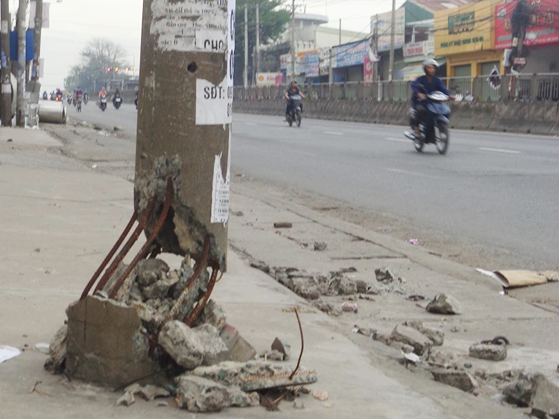 Đây là tuyến đường đông đúc xe cộ qua lại. Rất mong cơ quan chức năng sớm thay trụ mới để tránh mối nguy có thể xảy ra.