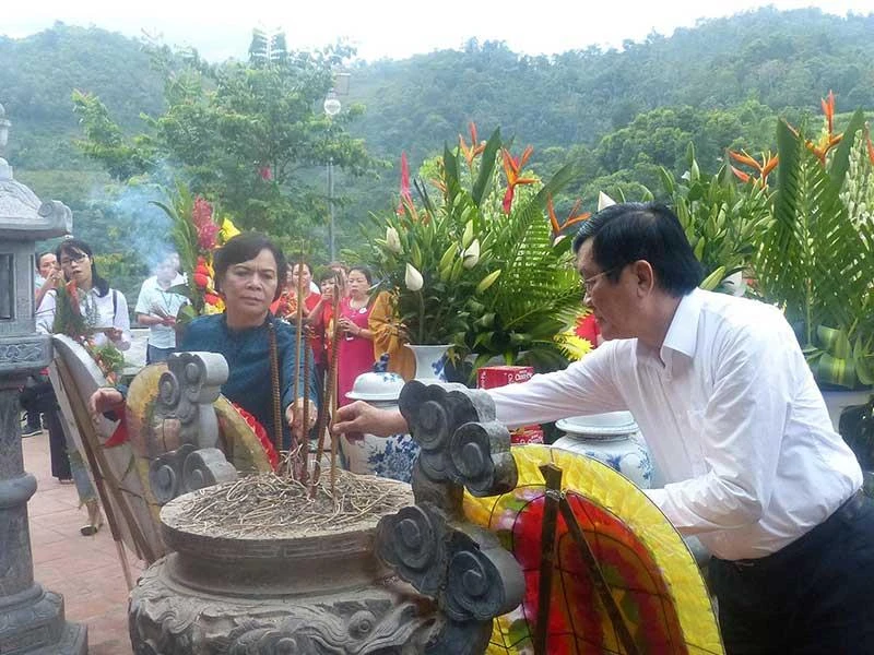 Nguyên Chủ tịch nước Trương Tấn Sang thắp hương tưởng niệm các anh hùng liệt sĩ .Ảnh: SGGP