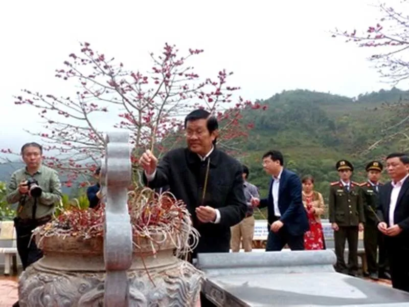Nguyên Chủ tịch nước Trương Tấn Sang dâng hương ở đài hương 468, khu tưởng niệm các liệt sĩ hy sinh ở mặt trận Vị Xuyên. Ảnh: TB