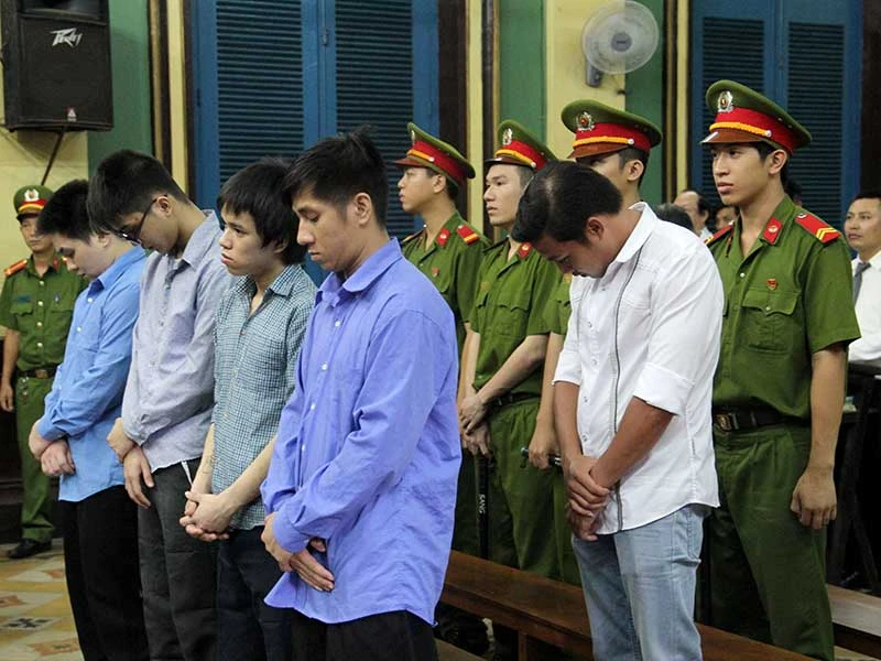 Bị cáo Phạm Sỹ Hoài Như(bìa phải) cùng đồng phạm nghe tòa tuyên án. Ảnh: HOÀNG GIANG