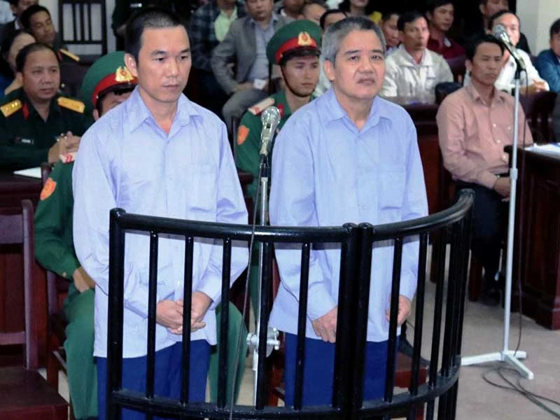 Hai bị cáo trước vành móng ngựa. Ảnh: LQL