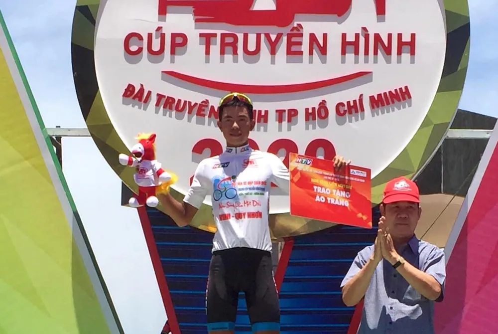 Áo trắng dành cho tay đua trẻ tạm thời thuộc về Nguyễn Hướng (Bikelife Đồng Nai). ẢNH: HUỲNH VĂN THUẬN
