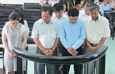 Các bị cáo đang nghe tòa tuyên án. Ảnh: TẤN LỘC