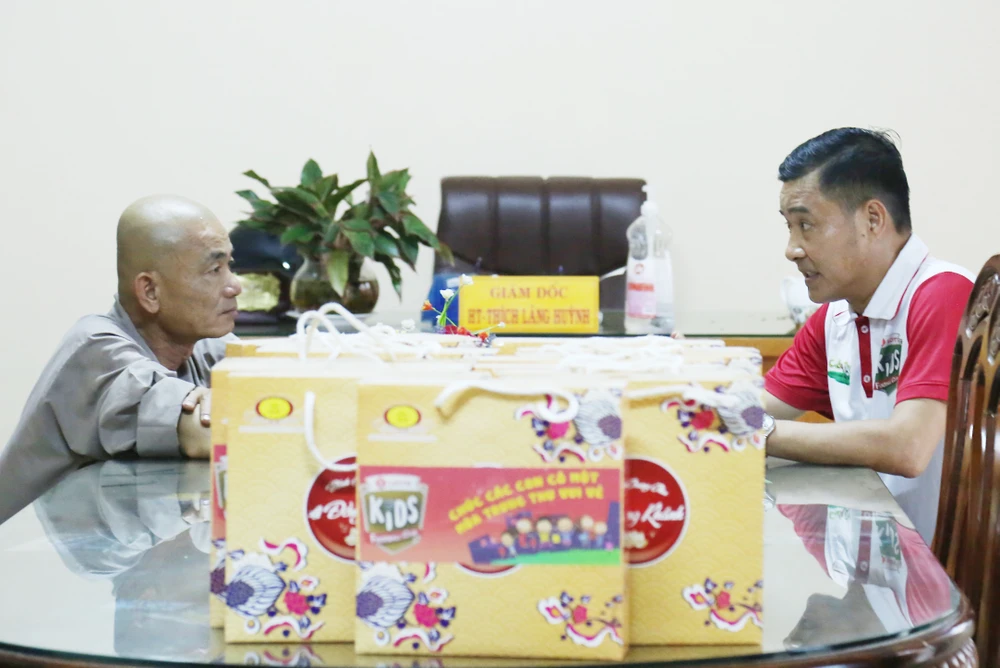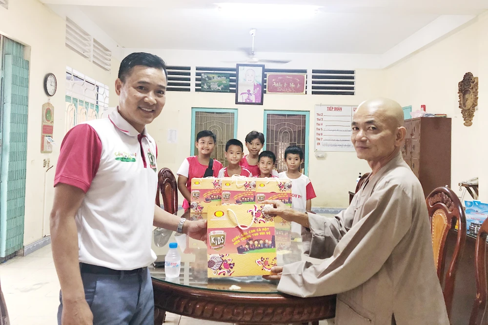 Thay lời cám ơn các em nhỏ, thầy Thích Lăng Huỳnh – Đại diện Ban lãnh đạo Cơ sở nuôi dưỡng trẻ mồ côi Long Hoa: “Đại diện trường và các em nhỏ, chúng tôi cám ơn món quà này từ thầy Sơn và các cầu thủ nhí.