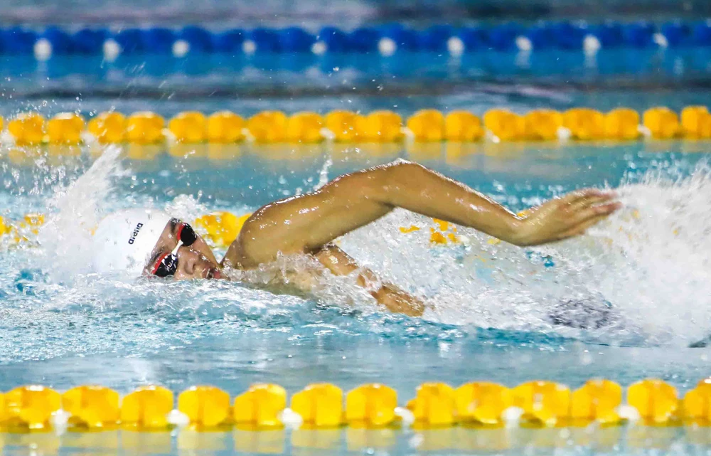 Kình ngư Nguyễn Huy Hoàng giành chiếc HCV thứ tư, thiết lập ba kỷ lục quốc gia mới các cự ly bơi tự do. Ảnh: PHẠM HUY