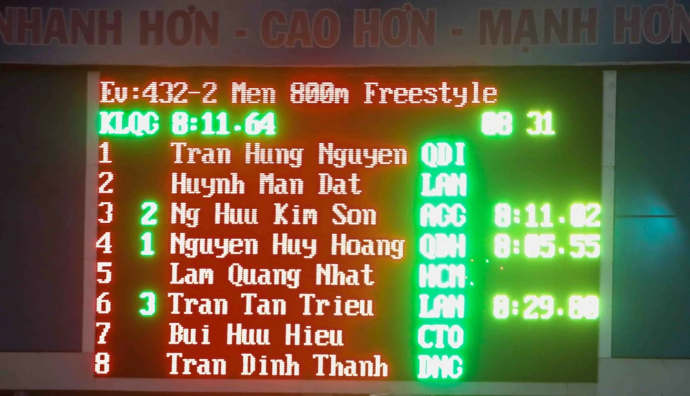 Kỷ lục 8'05"55 do Nguyễn Huy Hoàng thiết lập ở cự ly 800 m tự do nam. Ảnh: PHẠM HUY