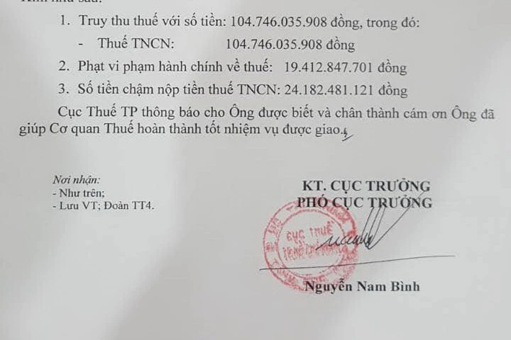 Quyết định xử phạt của Cục Thuế TP.HCM đối với Công ty Nguyễn Kim. Ảnh: HN