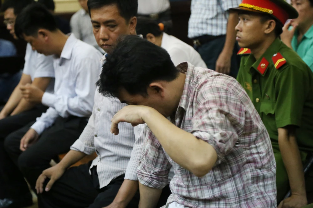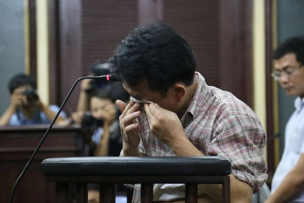 Bị cáo Hùng lau nước mắt nghe các nhân viên của mình nói lời sau cùng.