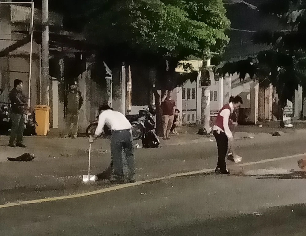 Nhân viên quán bar sau đó dọn dẹp khu vực. Ảnh Kiếm Phong.
