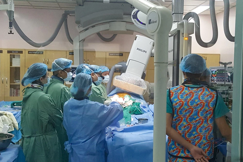 Ê kip can thiệp điều trị cho bệnh nhân. Ảnh: NP