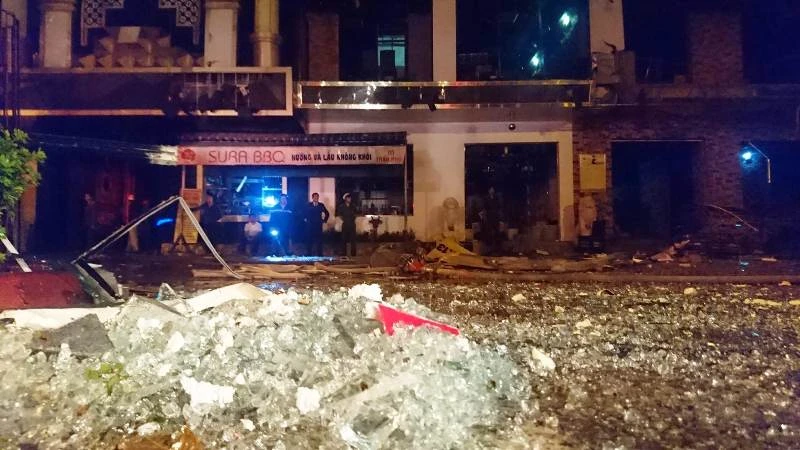 Vụ nổ được xác định xuất phát từ nhà hàng nướng và lẩu không khói Sura BBQ khiến toàn bộ kính, cửa của nhà hàng nổ tung, mảnh kính văng ra xa khoảng 200 m. Vụ nổ làm vỡ kính và hỏng xe máy trên tầng 2 đại lý xe máy Đức Ân.