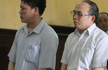 Hai bị cáo Trụ và Bằng tại phiên tòa. Ảnh: NN