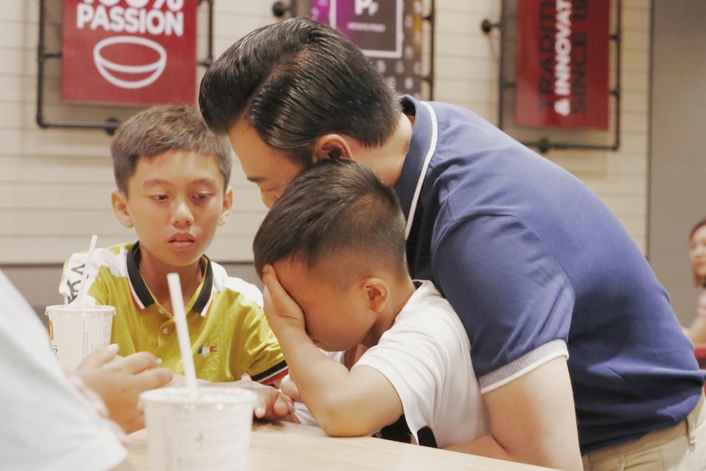 Không kiềm được sự buồn bã khi phải chia tay đồng đội, Đồng Hiểu Đức ngay sau đó gục mặt xuống bàn khóc nức nở. MC Tuấn Tú cũng không kiềm được sự xúc động, đến ôm và an ủi cầu thủ nhí này.