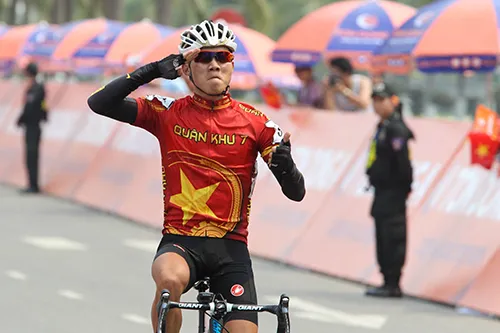 Tuyển thủ trẻ Huỳnh Thanh Tùng (Quân khu 7) tung cú nước rút thần tốc, về nhất chặng 8.