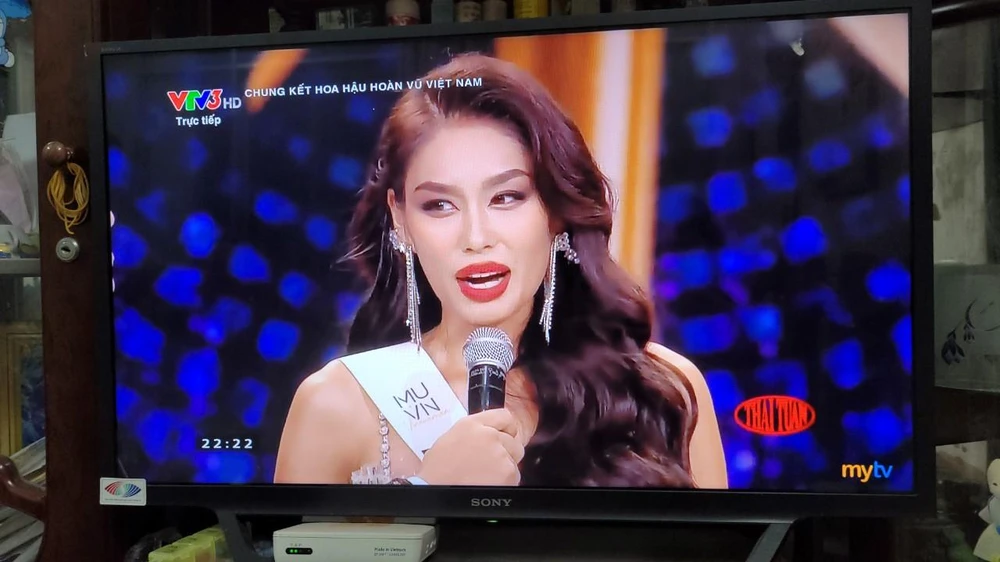 Top 16 Hoa hậu Hoàn vũ Việt Nam 2022 đang thi áo tắm, phần thi hấp dẫn nhất mà khán giả mong đợi. Chương trình trực tiếp trên kênh VTV3.