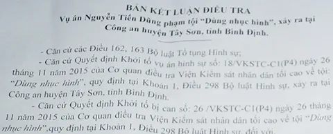 Kết luận điều tra vụ dùng nhục hình tại Công an huyện Tây Sơn (Bình Định). Ảnh: TT