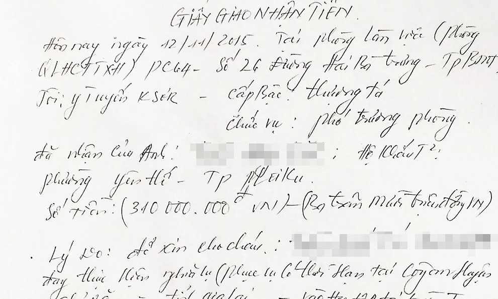 Một trong những giấy nhận tiền mà bị cáo Y Tuyến đã viết.