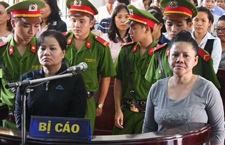 Bị cáo Lan Anh (trái) và Minh Thu nghe tòa tuyên án. Ảnh: VĂN NGỌC
