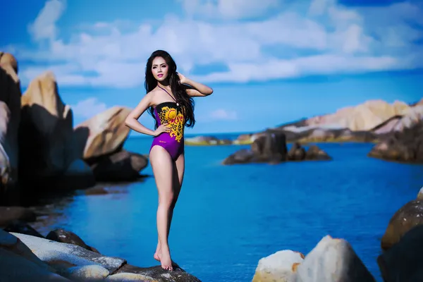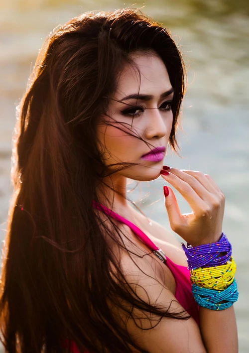 Nguyễn Thúy Nga gợi cảm trong trang phục áo tắm một mảnh.