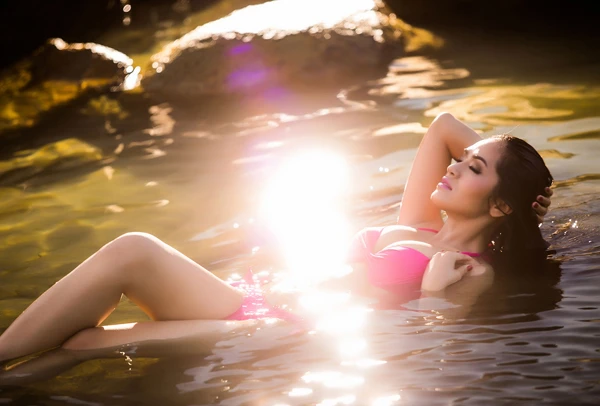 Nữ diễn viên 'Gió nghịch mùa' thư thái thả hồn trong làn nước mát, giải tỏa cái nóng của mùa hè Sài Gòn.