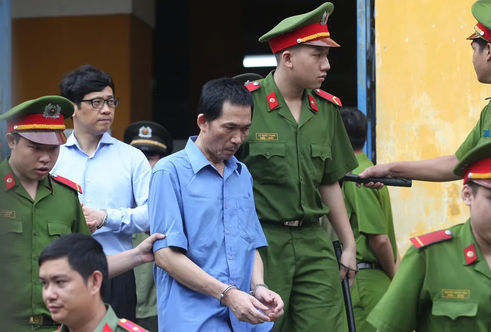 Bị cáo Mai (đeo kính) được dẫn giải về sau phiên xử.
