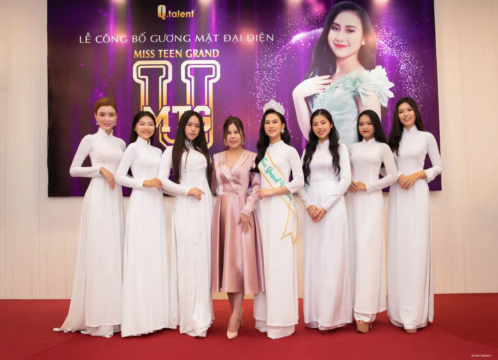 Bà Nguyễn Như Quỳnh- Giám đốc Công ty Q-Talent- Phó BTC Hoa hậu Môi trường Việt Nam và các gương mặt đoạt giải cao Miss Teen International Việt Nam