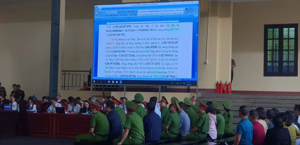 Tòa Phú Thọ phát nội dung bản cáo trạng trên màn hình lớn cho mọi người tiện theo dõi. Ảnh: Đ.MINH