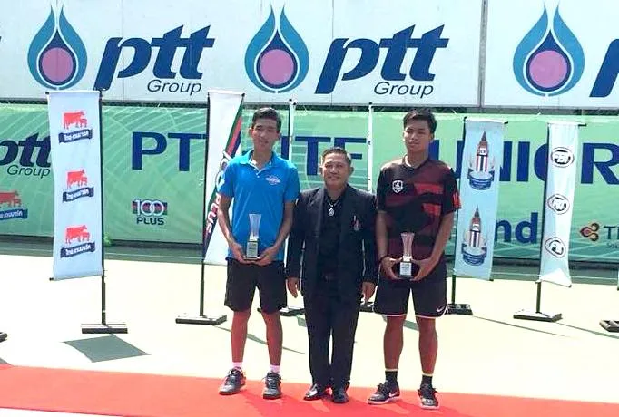 Tài năng 16 tuổi Nguyễn Văn Phương có biệt danh "vua ngược dòng" tiếp tục có màn lội ngược đánh bại tay vợt Thái Lan giành chức vô địch nhóm 4 trẻ ITF. Ảnh: PHẠM HUY