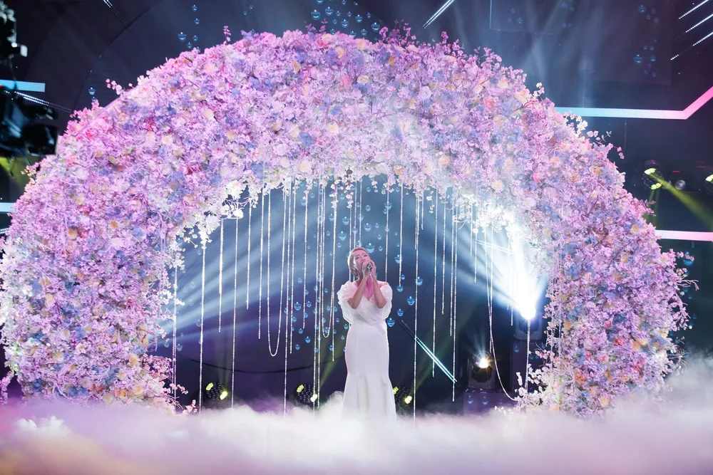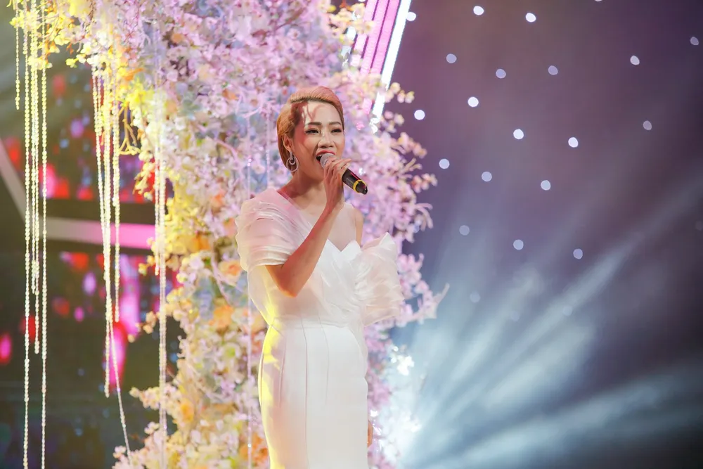 Ngọc Bích thể hiện ca khúc Tóc gió thôi bay tại Đấu trường ngôi sao. Ảnh: JET