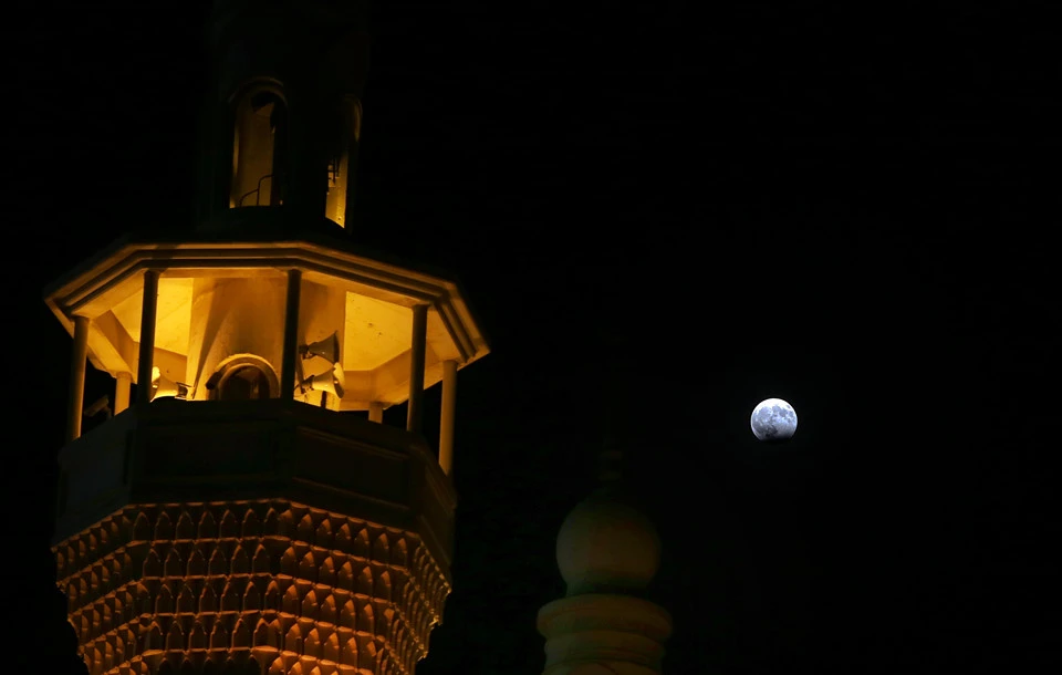 Nguyệt thực một phần tại thành phố ven biển Netanya ở Israel, đêm 7/8. Khi nguyệt thực một phần diễn ra, Mặt Trăng sẽ đi vào vùng bóng tối hoàn toàn của Trái Đất và chuyển sang màu đỏ sẫm, rất tối so với phần còn lại. Nguyệt thực từng bị hiểu nhầm và coi là hiện tượng "gấu ăn trăng". Ảnh: AFP/Getty.