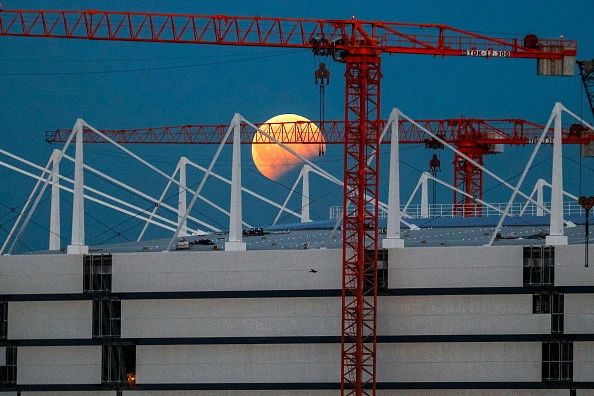 Nguyệt thực một phần trên công trường xây dựng của Sân vận động Kaliningrad trước kỳ World Cup 2018 ở Nga, ngày 7/8. Ảnh: TASS/Getty.